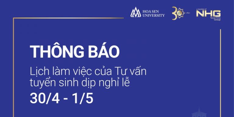 Thông báo lịch làm việc của Bộ phận Tư vấn tuyển sinh dịp lễ 30/4 – 1/5