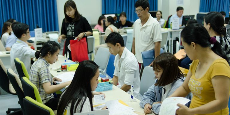 Đông đảo thí sinh trúng tuyển Hoa Sen đến làm thủ tục nhập học ngày đầu tiên