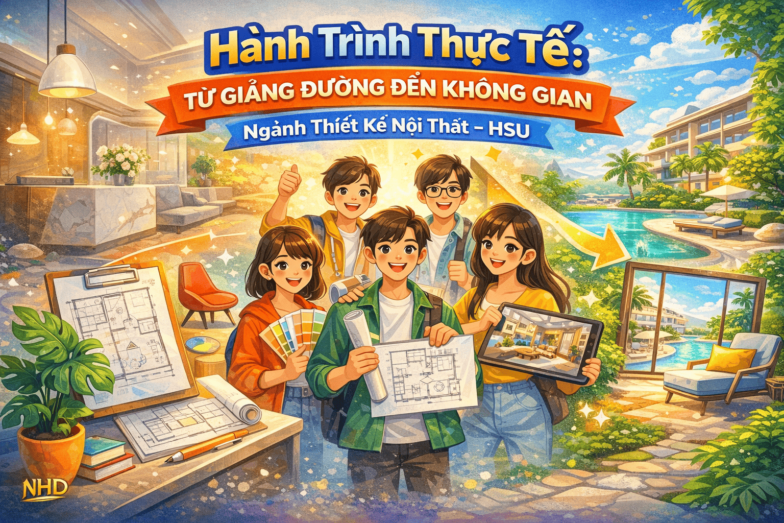 Thống kê tháng 06/2025, 100% sinh viên ngành Thiết kế Nội thất có việc làm trước khi tốt nghiệp, 93% làm việc đúng chuyên ngành.