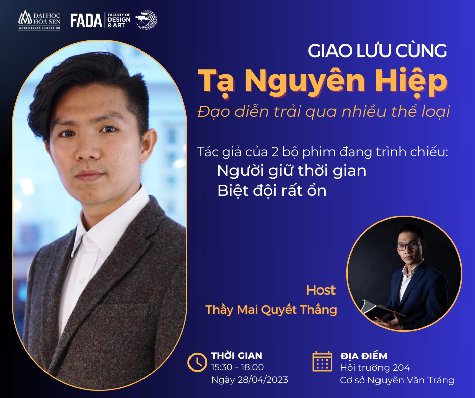 Bằng những kiến thức và kinh nghiệm thực chiến của mình trên con đường làm phim chuyên nghiệp, Đạo diễn Tạ Nguyên Hiệp sẽ có những chia sẻ đầy bổ ích cho các bạn sinh viên ngành Phim nói riêng và sinh viên Đại học Hoa Sen nói chung về những yếu tố để bắt đầu trở thành một nhà làm phim thực thụ. Đạo diễn cũng chia sẻ thêm về quá trình hiện hóa những ý tưởng sáng tạo của mình và đưa những tác phẩm đến với công chúng.