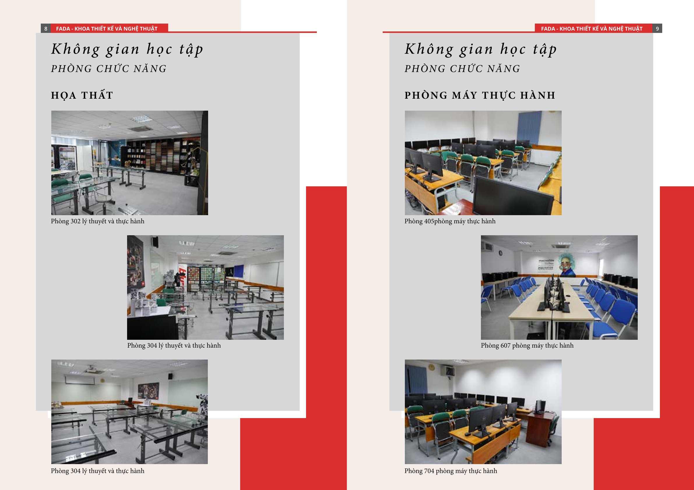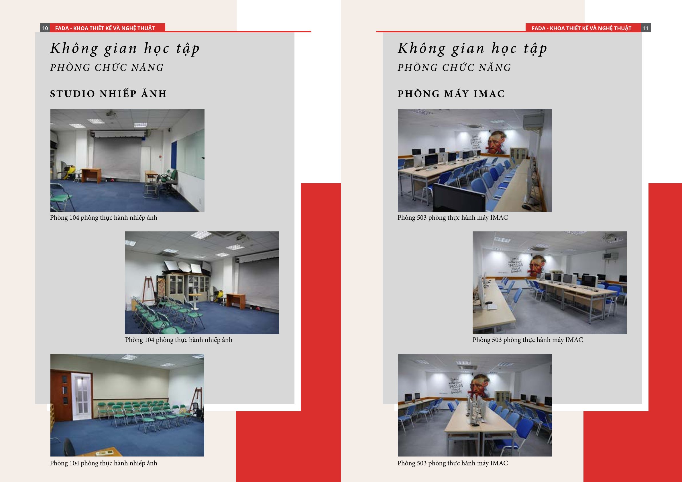 Sinh viên Khoa Thiết kế – Nghệ thuật được học tập trong môi trường hiện đại với hệ thống cơ sở vật chất chuẩn quốc tế gồm: máy iMac Retina 5K, bảng vẽ điện tử hoạ thất, phòng máy in 3D, phòng thực hành thực tế ảo VR… Chương trình cũng chú trọng yếu tố thực hành thông qua mô hình học tập dự án, studio sáng tạo, workshop chuyên ngành, hoạt động cùng doanh nghiệp, giúp sinh viên phát triển toàn diện kiến thức chuyên môn, năng lực sáng tạo và kỹ năng nghề nghiệp.
