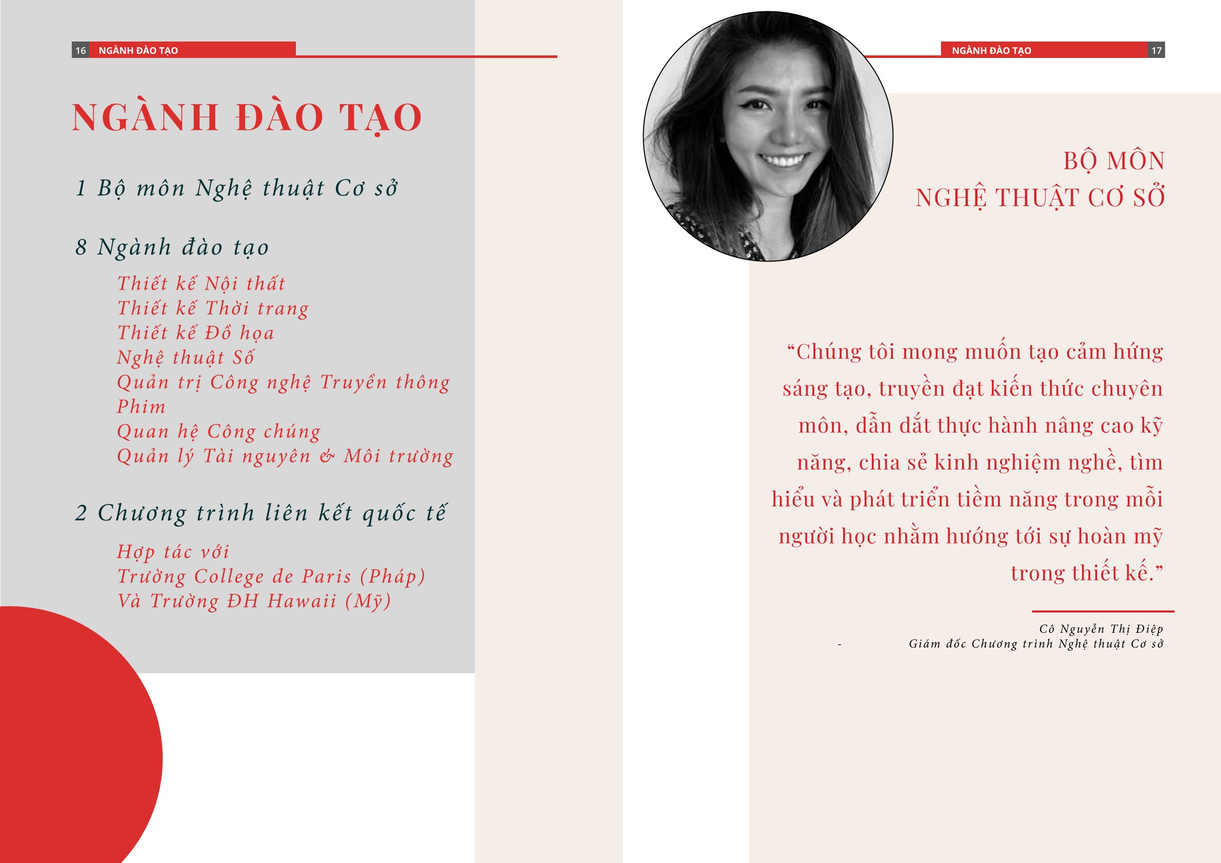 Khoa Thiết kế – Nghệ thuật được định vị là môi trường đào tạo chuyên sâu về lĩnh vực Công nghệ và Sáng tạo, kết hợp hài hoà giữa nền tảng học thuật chuẩn quốc tế cùng trải nghiệm thực tiễn phong phú. Với 4 ngành đào tạo là Thiết kế Thời trang, Thiết kế Nội thất, Thiết kế Đồ hoạ và Nghệ thuật số, sinh viên được nuôi dưỡng tư duy thẩm mỹ hiện đại, phát triển năng lực nghề nghiệp và kỹ năng quản trị – những yếu tố then chốt để thành công trong lĩnh vực sáng tạo đầy cạnh tranh.