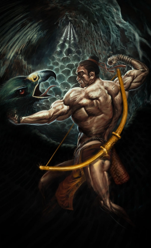 Cuộc ác chiến của Thạch Sanh với đại bàng tinh dưới hang sâu.