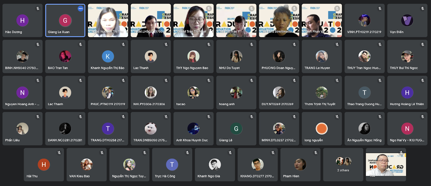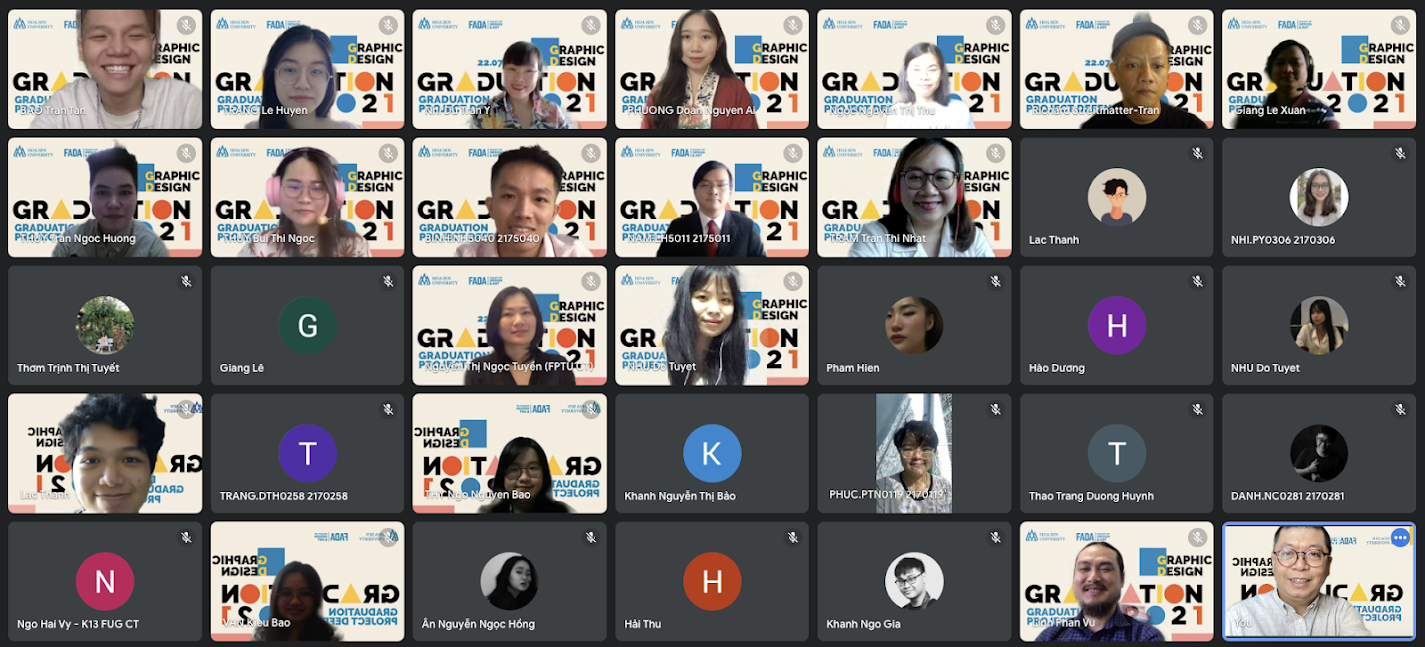 Buổi Bảo vệ Đồ án Tốt nghiệp trực tuyến của ngành Thiết kế Đồ họa đã diễn ra thành công với sự đồng thuận kết quả thẩm định chất lượng của 9 đồ án từ Hội đồng và đã kết thúc tốt đẹp.
