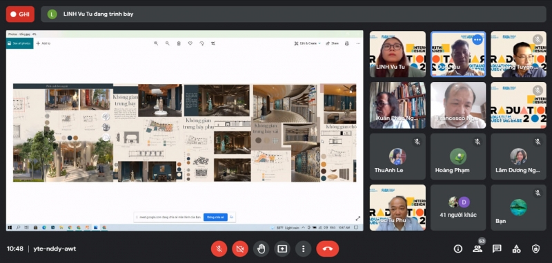 Quan trọng hơn hết, hình thức thuyết trình trực tuyến không làm giảm đi chất lượng trình bày đồ án, cũng như sự hào hứng của các em sinh viên khi đón nhận và những lời nhận xét hữu ích và sẻ chia kinh nghiệm từ các chuyên gia, doanh nghiệp và kiến trúc sư, nhà thiết kế trong ngành diễn ra trong suốt buổi bảo vệ.