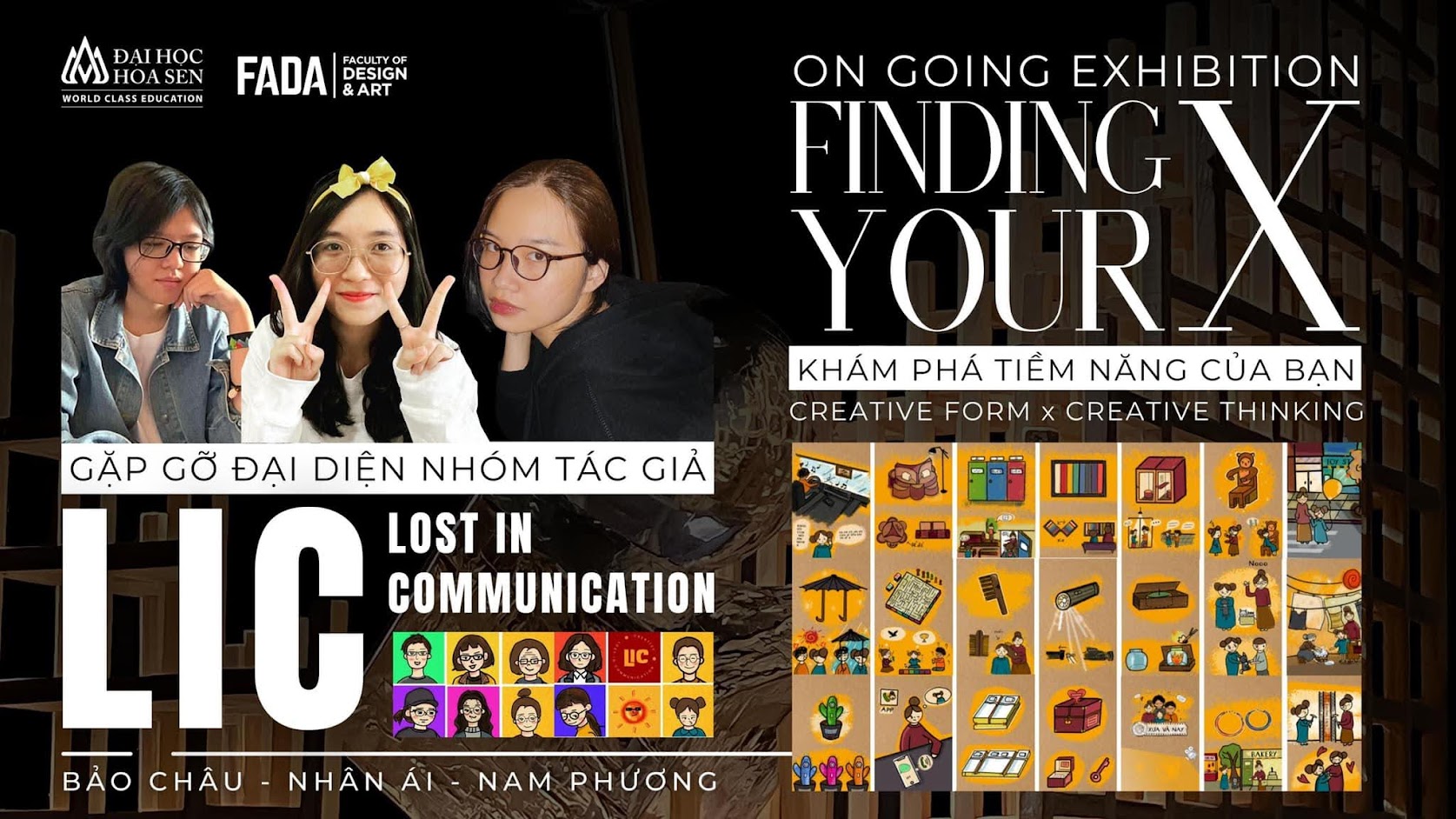 LIC là nhóm tác giả trong tuần lễ triển lãm Finding Your X ? LIC bao gồm 5 cô gái và 1 chàng trai K20: Nam Phương, Nhân Ái, Huệ Tú, Bảo Châu, Xuân Hương và Duy Khang.