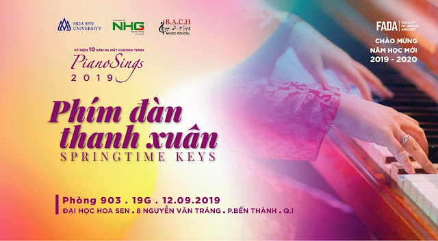 Nhân dịp chào năm học mới 2019 – 2020 và kỷ niệm 10 năm ra đời chương trình hòa nhạc [ Tiếng dương cầm hát – Piano Sings ], Trường Âm Nhạc B.A.C.H. phối hợp với Trường Đại học HOA SEN trân trọng giới thiệu đến bạn buổi hòa nhạc: [ Piano Sings – Phím đàn thanh xuân ]