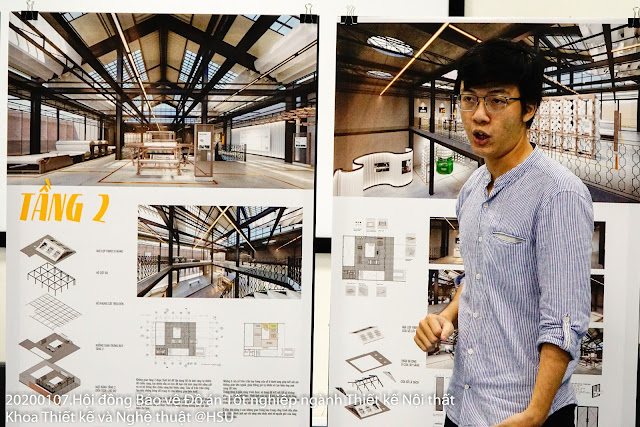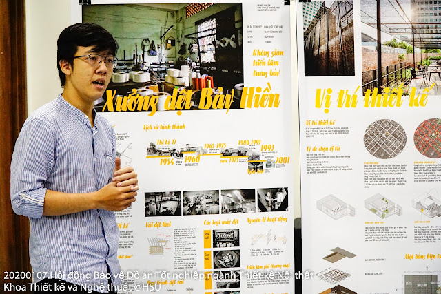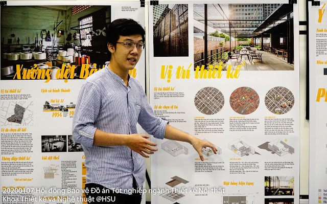 4. Sinh viên Nguyễn Huy bảo vệ đề tài “Không gian triển lãm trưng bày Xưởng dệt Bảy Hiền”