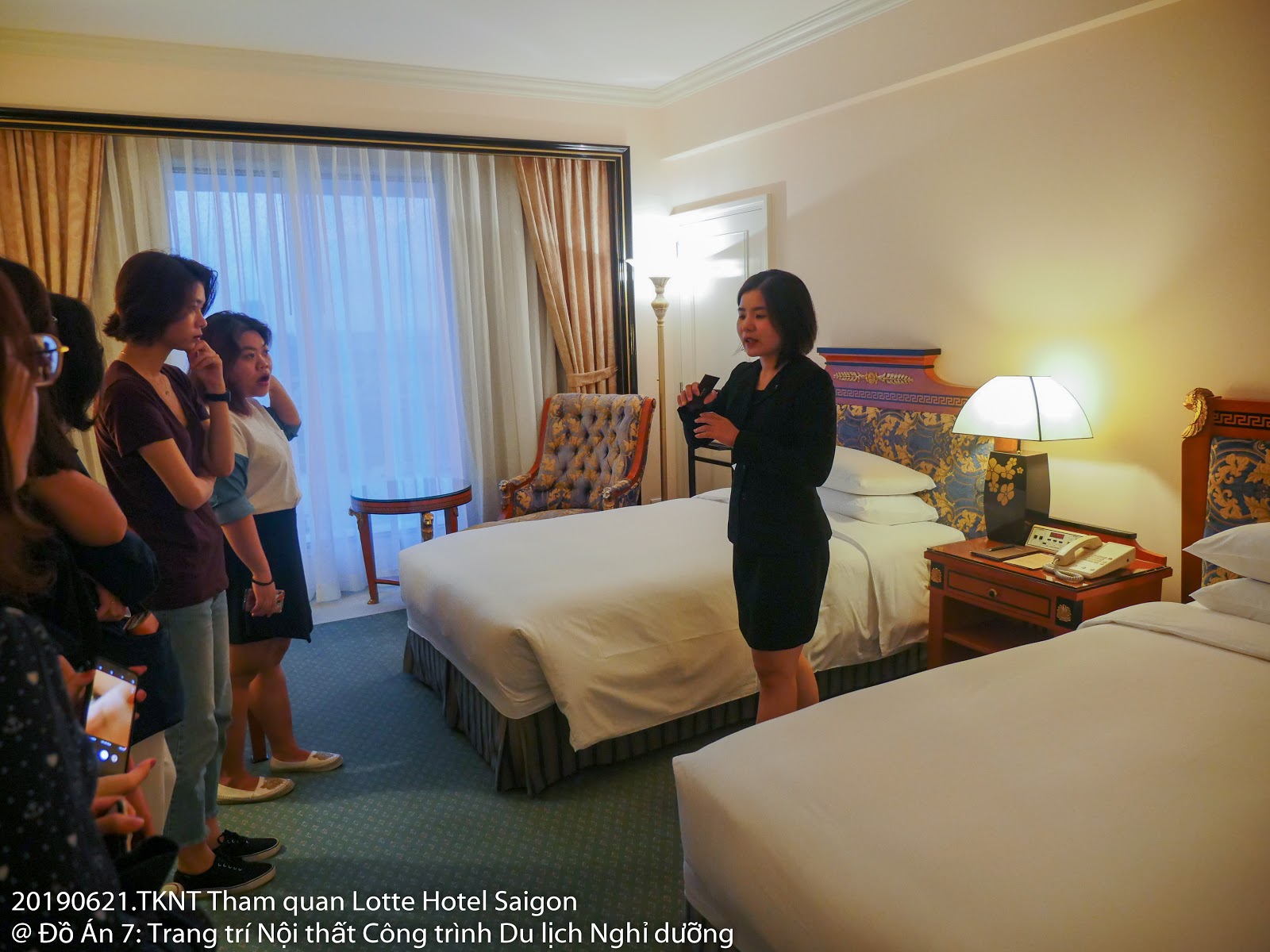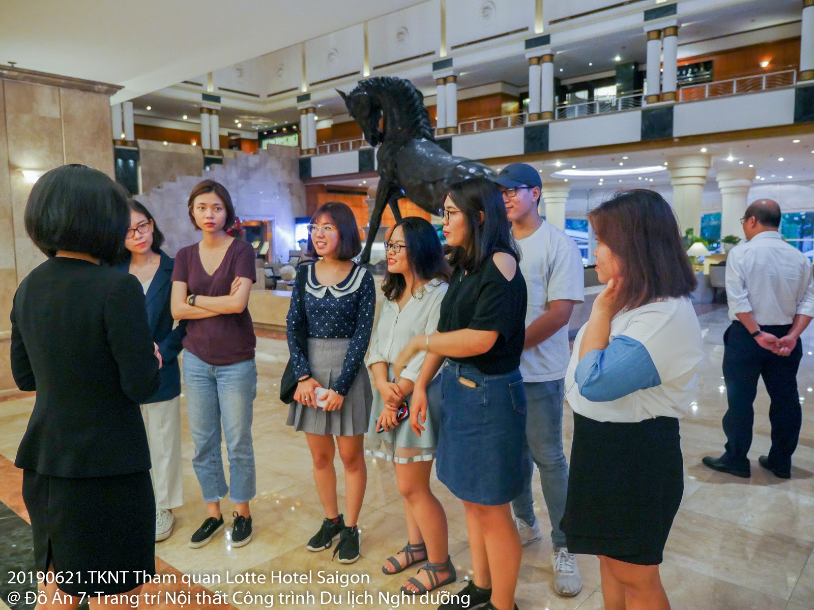 Chiều tối ngày 21/06/2019, thầy Từ Phú Đức, Trưởng khoa Khoa Thiết Kế và Nghệ Thuật trường Đại học Hoa Sen hướng dẫn sinh viên ngành Thiết kế Nội thất tham quan khách sạn 5 sao Lotte Legend Hotel Saigon theo môn học Đồ án 7: Trang trí Nội thất Công trình Du lịch Nghỉ dưỡng.