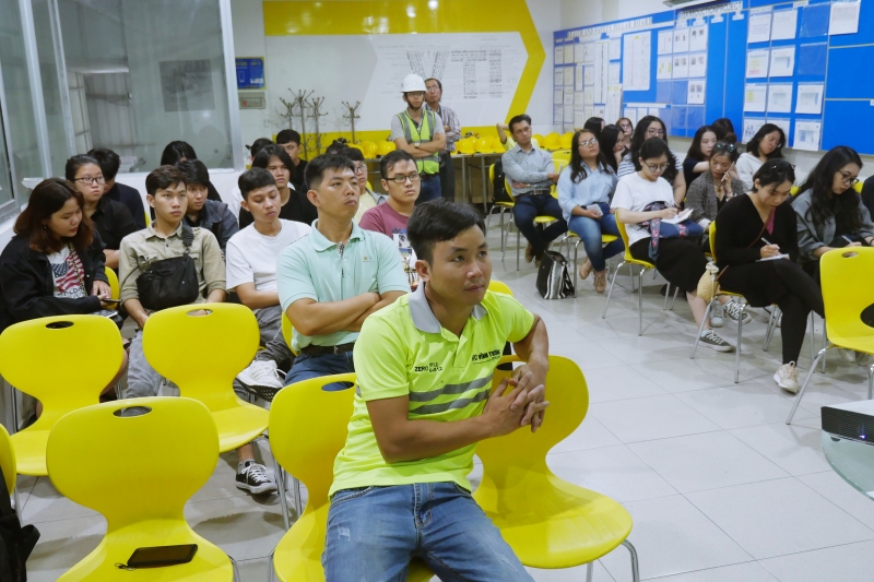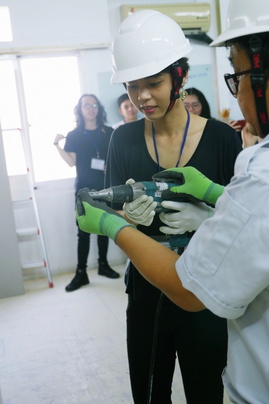 Ngoài việc xem quy trình sản xuất khung nhôm, tường thạch cao… các bạn còn được tham gia buổi workshop thi công tường thạch cao tại khu vực training của tập đoàn. Tại đây các bạn được tận tay thi công lắp ráp một tấm tường thạch cao với kích thước thật cũng như tham gia hỏi đáp các thắc mắc trong suốt quá trình tham quan.