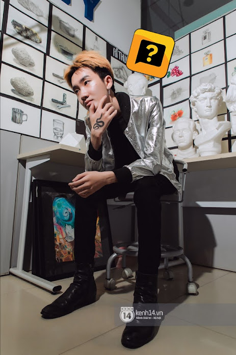 Chưa cần nhìn kỹ outfit nhưng Trần Minh Bảo Long cũng đủ gây ấn tượng với mái tóc nhuộm cam vàng cùng hình xăm cá tính ở bàn tay. Diện nguyên cây đen nhưng cậu bạn không mang lại cảm giác buồn tẻ nhờ bộ đôi áo khoác bomber metallic và boot da mũi nhọn. Bên cạnh đó, dáng người gầy gầy, cao cao cũng khiến anh chàng nhìn rất có chất “nghệ sĩ”