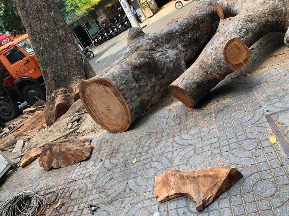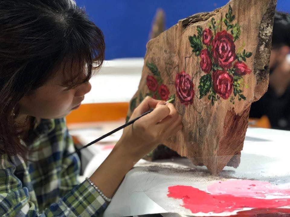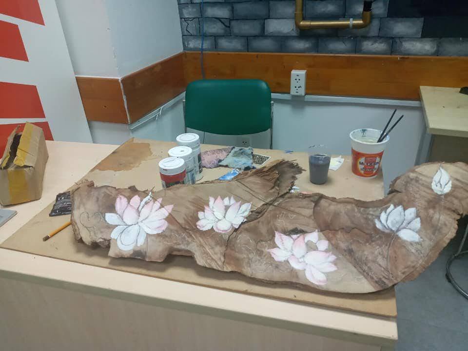 Tác phẩm của sv Khoa Thiết kế Nghệ thuật, Đại học Hoa Sen được sáng tác trên các gốc cây bỏ đi trước cổng trường.