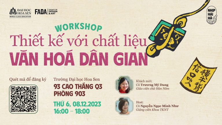 Ngành Thiết Kế Đồ Họa, Khoa Thiết Kế – Nghệ Thuật, trường Đại học Hoa Sen tổ chức Workshop “Thiết Kế Với Chất Liệu Văn Hoá Dân Gian” Chuỗi Chương Trình Nhịp Hải Hà Khoa Thiết Kế – Nghệ Thuật, trường Đại học Hoa Sen trân trọng giới thiệu
