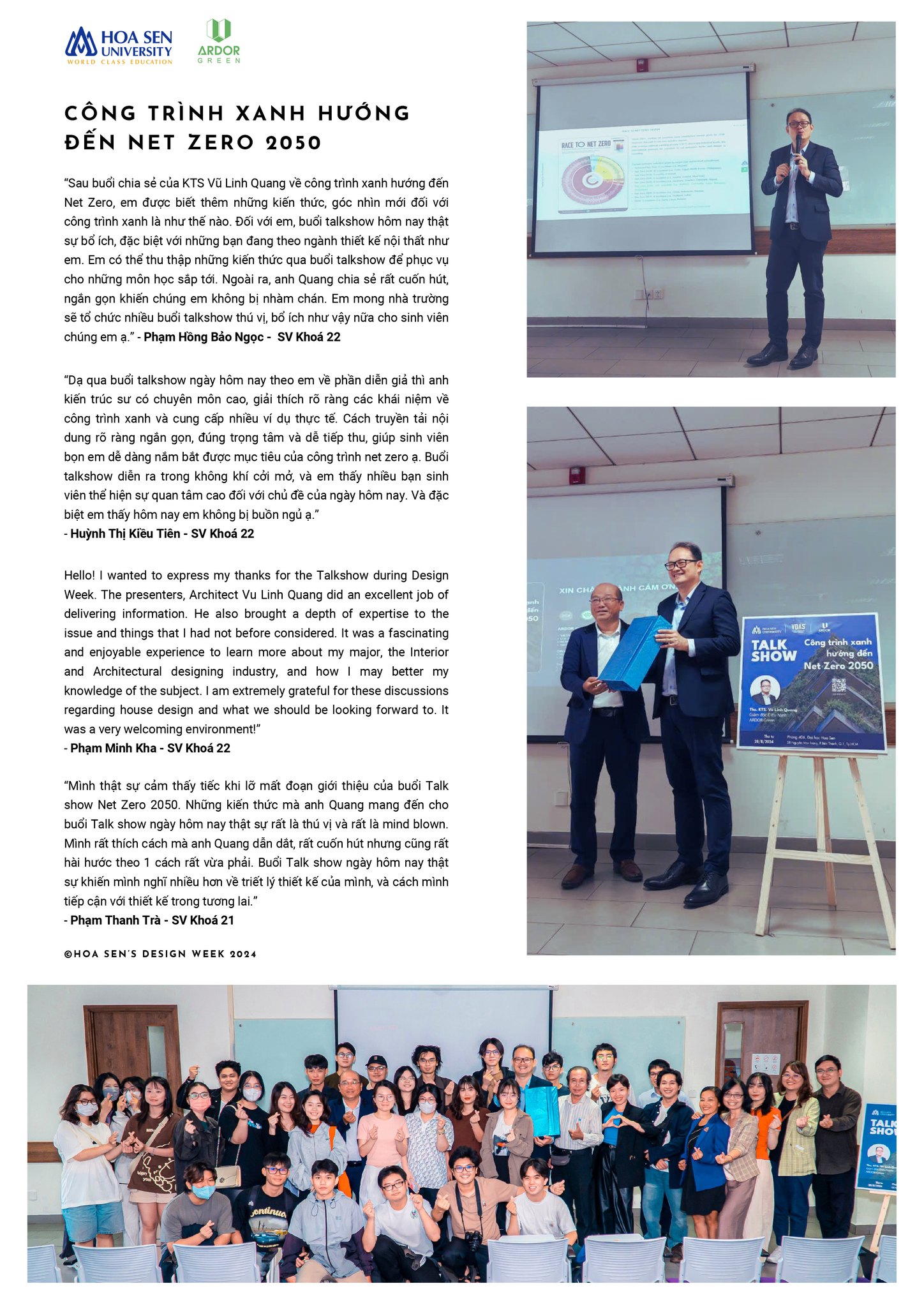 Ngày 28/08/2024, Khoa Thiết Kế – Nghệ Thuật, trường Đại học Hoa Sen tổ chức Seminar “Net Zero 2050” FADA “Design Week 2024” Khoa Thiết Kế – Nghệ Thuật, trường Đại học Hoa Sen trân trọng giới thiệu