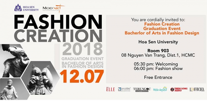 Đêm trình diễn thời trang Fashion Creation là hoạt động thường niên trong chuỗi sự kiện Graduation Show của ngành Thiết kế Thời trang nói riêng và Khoa Thiết kế và Nghệ thuật, Trường Đại học Hoa Sen nói chung. Fashion Creation đã trở thành một sự kiện thời trang được mong chờ nhất trong tuần lễ triển lãm sản phẩm tốt nghiệp của sinh viên Đại học Hoa Sen hằng năm. Năm nay, Fashion Creation 2018 với sự góp mặt của 22 sinh viên với 21 bộ sưu tập gồm 68 mẫu thiết kế xuất sắc. Trong đó...