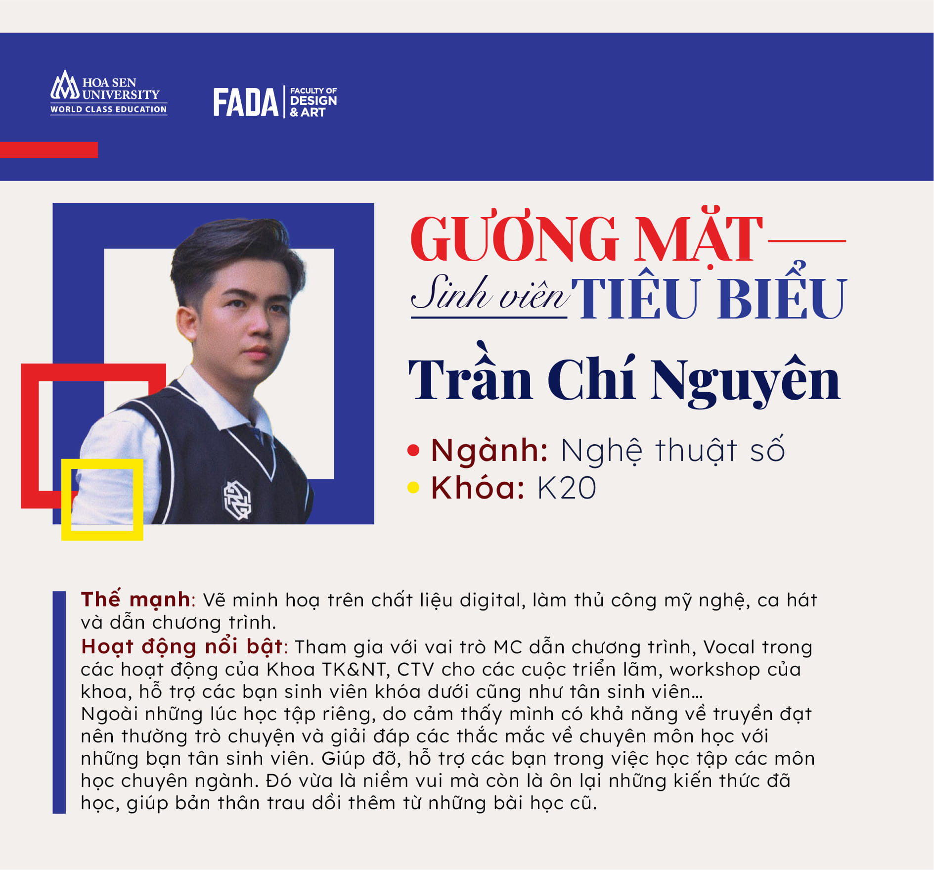 Ngành Nghệ Thuật Số, Khoa Thiết Kế – Nghệ Thuật, trường Đại học Hoa Sen Gương mặt sinh viên tiêu biểu K20 Ngành Nghệ Thuật Số Khoa Thiết Kế – Nghệ Thuật, trường Đại học Hoa Sen trân trọng giới thiệu