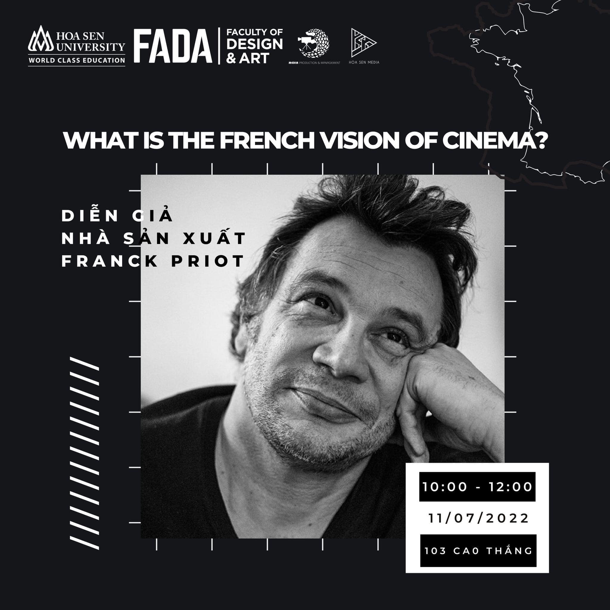 Ngành Phim, Ngành Quản Trị Công Nghệ Truyền Thông, Ngành Quan Hệ Công Chúng, Khoa Thiết Kế – Nghệ Thuật, trường Đại học Hoa Sen tổ chức  Talkshow “What is The French Vision of Cinema?” cùng Nhà Sản Xuất Franck Priot Khoa Thiết Kế – Nghệ Thuật, trường Đại học Hoa Sen trân trọng giới thiệu