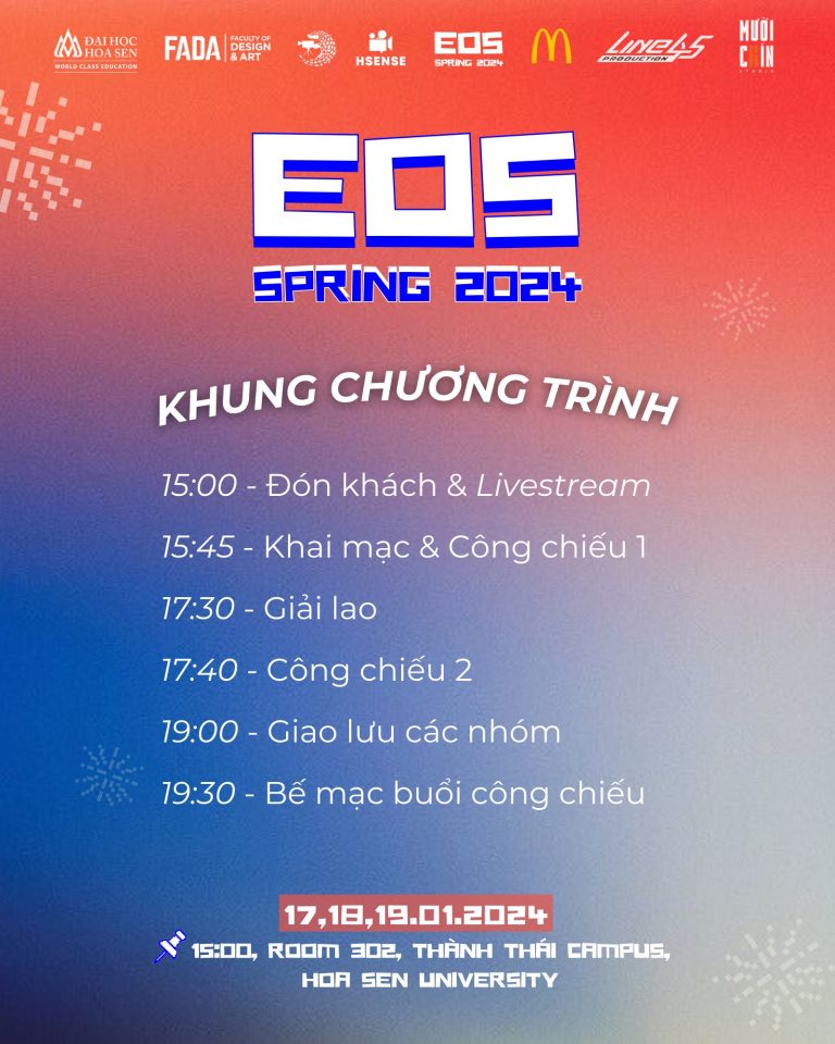 Ngành Quản Trị Công Nghệ Truyền Thông, Khoa Thiết Kế – Nghệ Thuật, trường Đại học Hoa Sen chia sẻ Không Khí EOS Spring 2024 Lúc Này Ngành Quản Trị Công Nghệ Truyền Thông Khoa Thiết Kế – Nghệ Thuật, trường Đại học Hoa Sen trân trọng giới thiệu