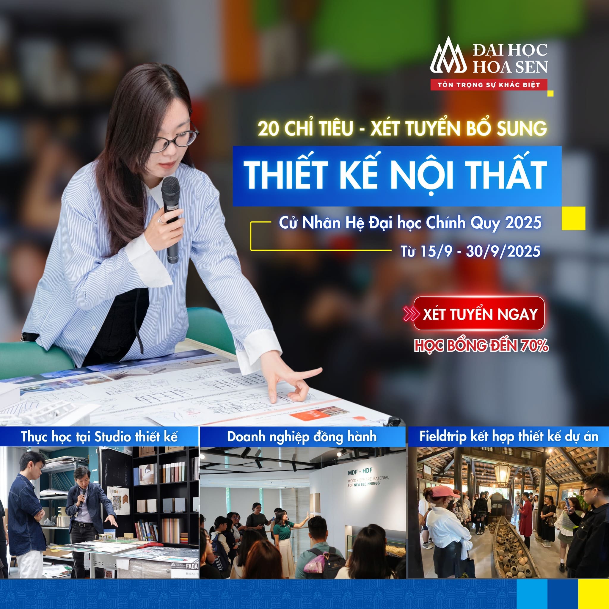 Ngành Thiết Kế Nội Thất, Khoa Thiết Kế – Nghệ Thuật, trường Đại học Hoa Sen Xét Tuyển Bổ Sung Ngành Thiết Kế Nội Thất Khoa Thiết Kế – Nghệ Thuật, trường Đại học Hoa Sen trân trọng giới thiệu