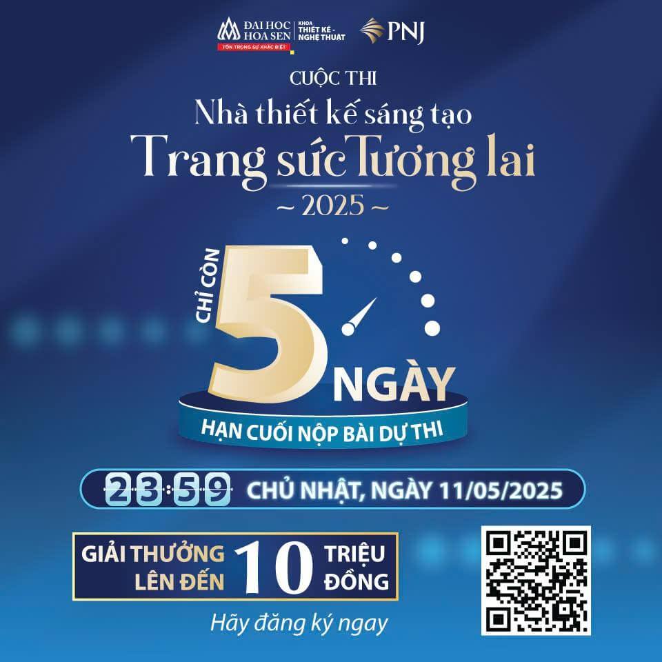 Khoa Thiết Kế – Nghệ Thuật, trường Đại học Hoa Sen thông báo Chỉ Còn 5 Ngày Nữa Cuộc Thi “Sáng Tạo Trang Sức Tương Lai 2025” Khoa Thiết Kế – Nghệ Thuật, trường Đại học Hoa Sen trân trọng giới thiệu Cuộc Thi “Sáng Tạo Trang Sức Tương Lai 2025”_01