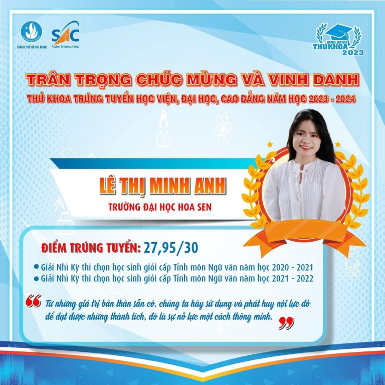 Ngành Thiết Kế Thời Trang, Khoa Thiết Kế – Nghệ Thuật, trường Đại học Hoa Sen vui mừng báo tin   Sv Lê Thị Minh Anh   Được Thành Đoàn Tp.HCM Vinh Danh Thủ Khoa Tiêu Biểu   Khoa Thiết Kế – Nghệ Thuật, trường Đại học Hoa Sen trân trọng giới thiệu