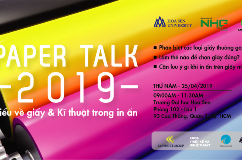Ngày 25/04/2019, được sự tài trợ của Công ty TNHH Giấy Lan Vi, ngành Thiết kế Đồ hoạ khoa Thiết kế và Nghệ thuật trường Đại học Hoa Sen tổ chức buổi workshop “Paper Talk” nhằm giúp các sinh viên hiểu về giấy và kỹ thuật trong in ấn tại phòng 102, cơ sở Cao Thắng. Công Ty TNHH Giấy Lan Vi 16/42 Trần Thiện Chánh, P.12, Q.10, TP.HCM Tel: +84 28 3861 9648 Fax: +84 8 3861 9650 Chị Phượng, đại diện Cty Giấy Lan Vi giới thiệu cho các bạn sinh viên kiến thức tổng quan về giấy trong...