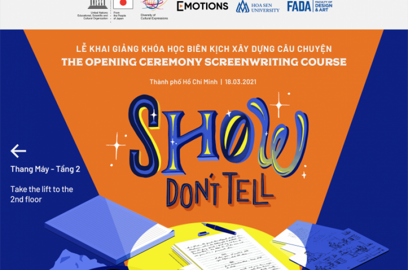 Văn phòng UNESCO Hà Nội trân trọng kính mời Ông/Bà tới tham dự Lễ Khai giảng Khóa học Kịch bản Xây dựng Câu chuyện SHOW DON’T TELL trong khuôn khổ Dự án E-MOTIONS của UNESCO “Thúc đẩy Kết nối và Thiết kế Môi trường sáng tạo cho các nhà làm phim” tại Đông Nam Á. Khoa Thiết Kế và Nghệ Thuật, trường Đại học Hoa Sen trân trọng giới thiệu