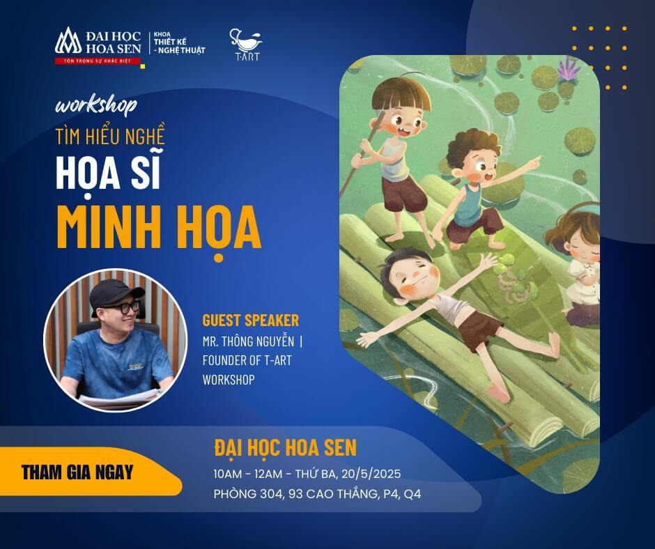 Khoa Thiết Kế – Nghệ Thuật, trường Đại học Hoa Sen Workshop Nghề Họa Sĩ Minh Họa Trong Thời Đại Số Khoa Thiết Kế – Nghệ Thuật, trường Đại học Hoa Sen trân trọng giới thiệu Workshop Nghề Họa Sĩ Minh Họa Trong Thời Đại Số