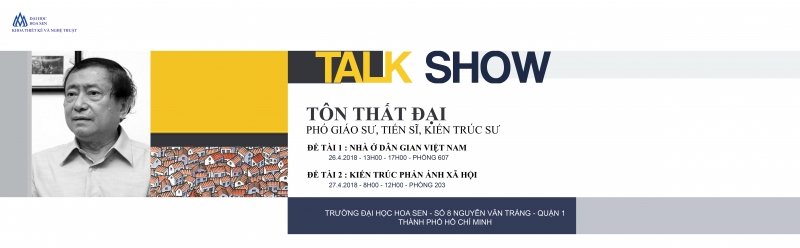 Talkshow 1: Nhà ở dân gian Việt Nam – thời gian: từ 13h00 đến 17h00 ngày thứ Năm 26/4/2018 – địa điểm: Phòng 607, Trụ sở Nguyễn Văn Tráng (08 Nguyễn Văn Tráng, P.Bến Thành, Q1, TPHCM).