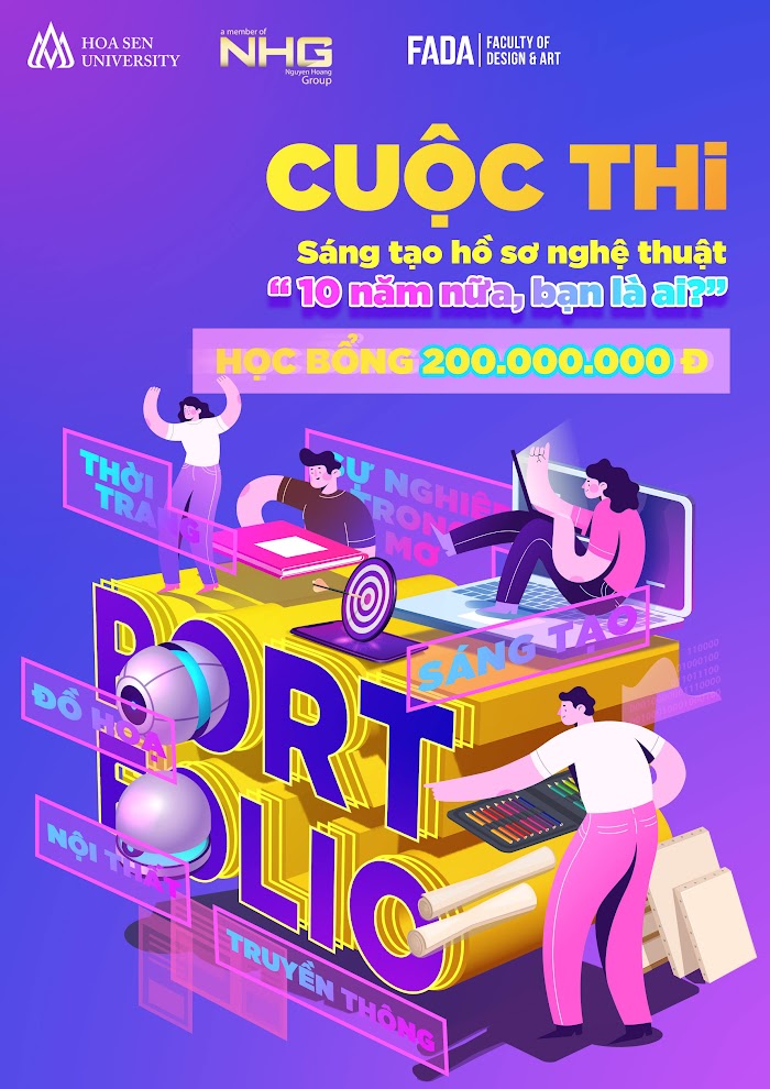 Chính vì thế, Trường Đại học Hoa Sen, một thành viên của Tập đoàn Nguyễn Hoàng phát động cuộc thi Sáng tạo hồ sơ nghệ thuật chủ đề “10 năm nữa, bạn là ai?”, với tổng giá trị giải thưởng trên 200.000.000vnđ; cuộc thi nhằm giúp các bạn học sinh hiểu tường tận và trao dồi khả năng xây dựng hồ sơ năng lực nghệ thuật. Ban giám khảo của cuộc thi là các nhân vật có sức ảnh hưởng lớn, đồng thời cũng là giảng viên của khoa Thiết kế và Nghệ thuật trường Đại học Hoa Sen.