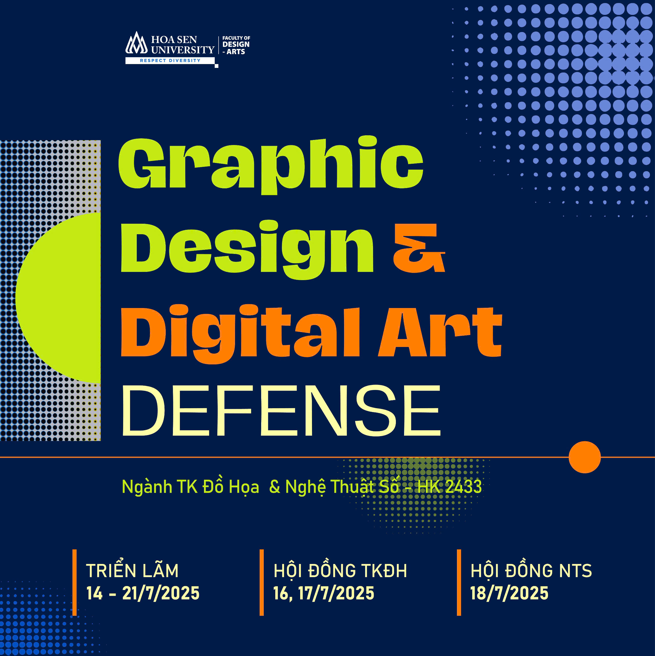 Mến mời các bạn sinh viên và tất cả những bạn trẻ vừa hoàn tất chương trình THPT yêu thích lĩnh vực thiết kế sáng tạo, đồ họa ứng dụng, đồ họa kỹ thuật số, đồ hoạ multimedia, làm phim hoạt hình, thiết kế nhận diện thương hiệu & bao bì sản phẩm, thiết kế minh họa sách, thiết kế game, thiết kế ứng dụng UX-UI, công nghệ VR, công nghệ 3D… đến tham quan, lắng nghe thuyết trình bảo vệ Đồ án tốt nghiệp năm 2025 với hai ngành Thiết kế Đồ họa (Graphic Design) và ngành Nghệ thuật Số (Digital Art). Các chủ đề năm nay hướng về tính ứng dụng và công nghệ mới trong các đồ án thiết kế.