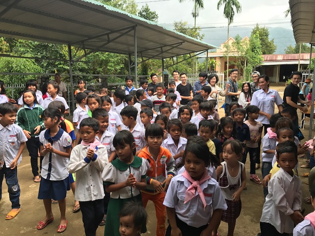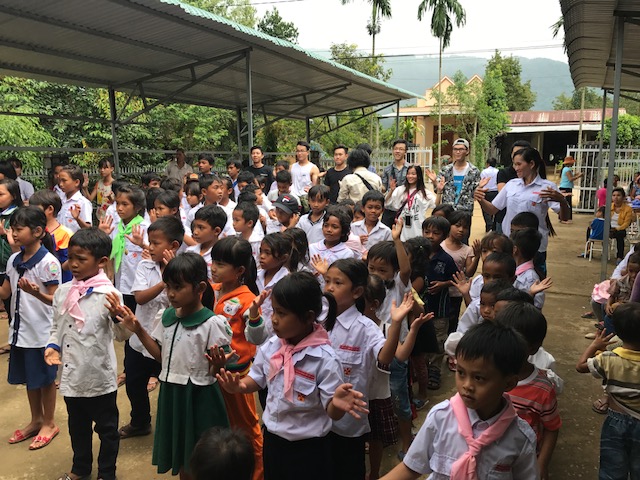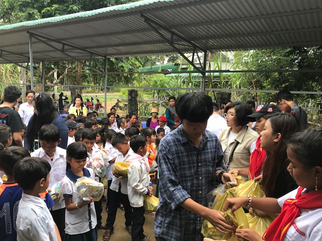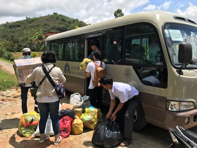 Từ trước đó các em SV đã lên kế hoạch quyên góp tiền, bánh kẹo, sữa, lồng đèn trung thu và hiện vật như tập vở, dụng cụ học tập, quần áo cũ, tivi… với hơn 120 phần quà cho trẻ em và 30 kiện hàng. Đoàn với 25 em SV và 3 GV xuất phát từ Cơ Sở Cao Thắng lúc 06h30, vượt hơn 180 km và đến nơi lúc 11h00. Tuy nhiên, địa hình khó đi và xe không thể di chuyển được do cầu treo chỉ dành cho xe 2 bánh nên các em SV, GV đi bộ hơn 2.5km để đến được làng dân tộc. Khi đến nơi, không khi đón đoàn thật bất ngờ, xúc động với màn biểu diễn cồng chiên và múa hát của 120 em thiếu nhi. Tại đây các em SV thấy được những hoàn cảnh khó khăn của các em thiếu nhi người dân tộc, có những em không có dép mang, quần áo thiếu thốn, không đủ ăn, bệnh tật và đặc biệt là nhiều em không đến trường… SV đã giao lưu, chơi với các em và tìm hiểu về đời sống và tinh thần cũng như ước mong được đến trường.
