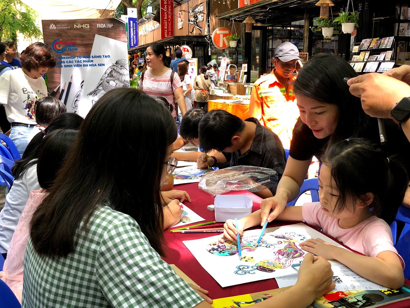 Workshop “Tô màu Sáng tạo – Color Me Now” tại quầy sách đại học Hoa Sen, đường sách Nguyễn Văn Bình, Q.1