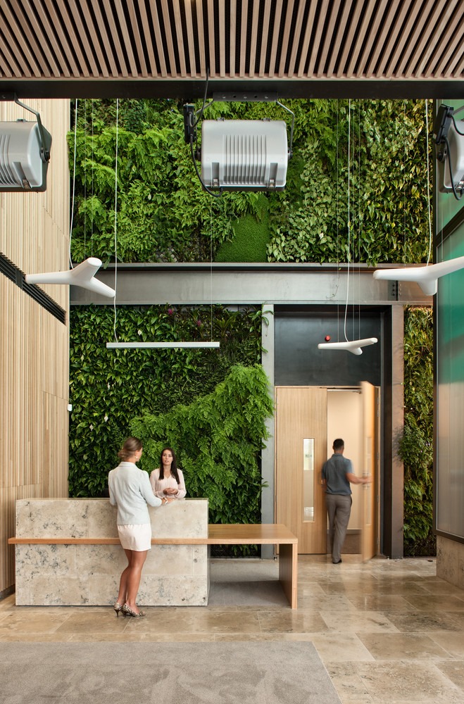Cây xanh có tác dụng làm giảm tiếng ồn, đồng thời vẫn thúc đẩy sự tương tác tích cực giữa những nhân viên. Nhiều ý tưởng sáng tạo được hình thành hơn khi các nhóm làm việc cạnh một bức tường thực vật xanh mát (vertical garden).