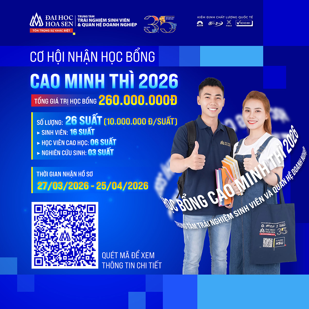 THÔNG BÁO HỌC BỔNG CAO MINH THÌ NĂM 2026