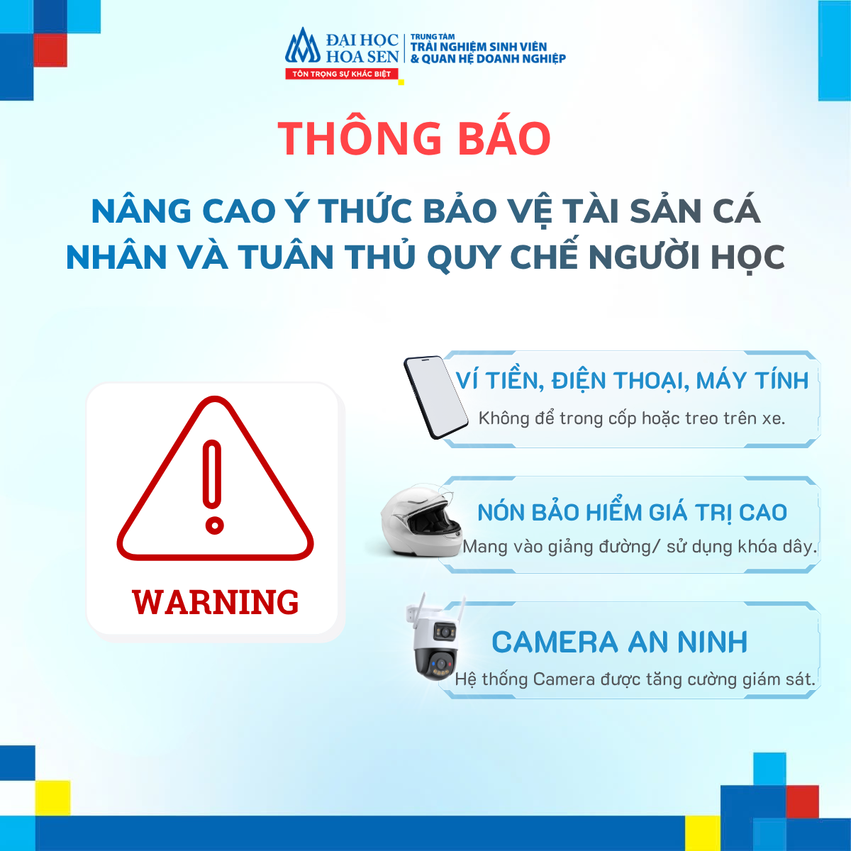 [THÔNG BÁO] V/v Nâng cao ý thức bảo vệ tài sản cá nhân và tuân thủ Quy chế người học