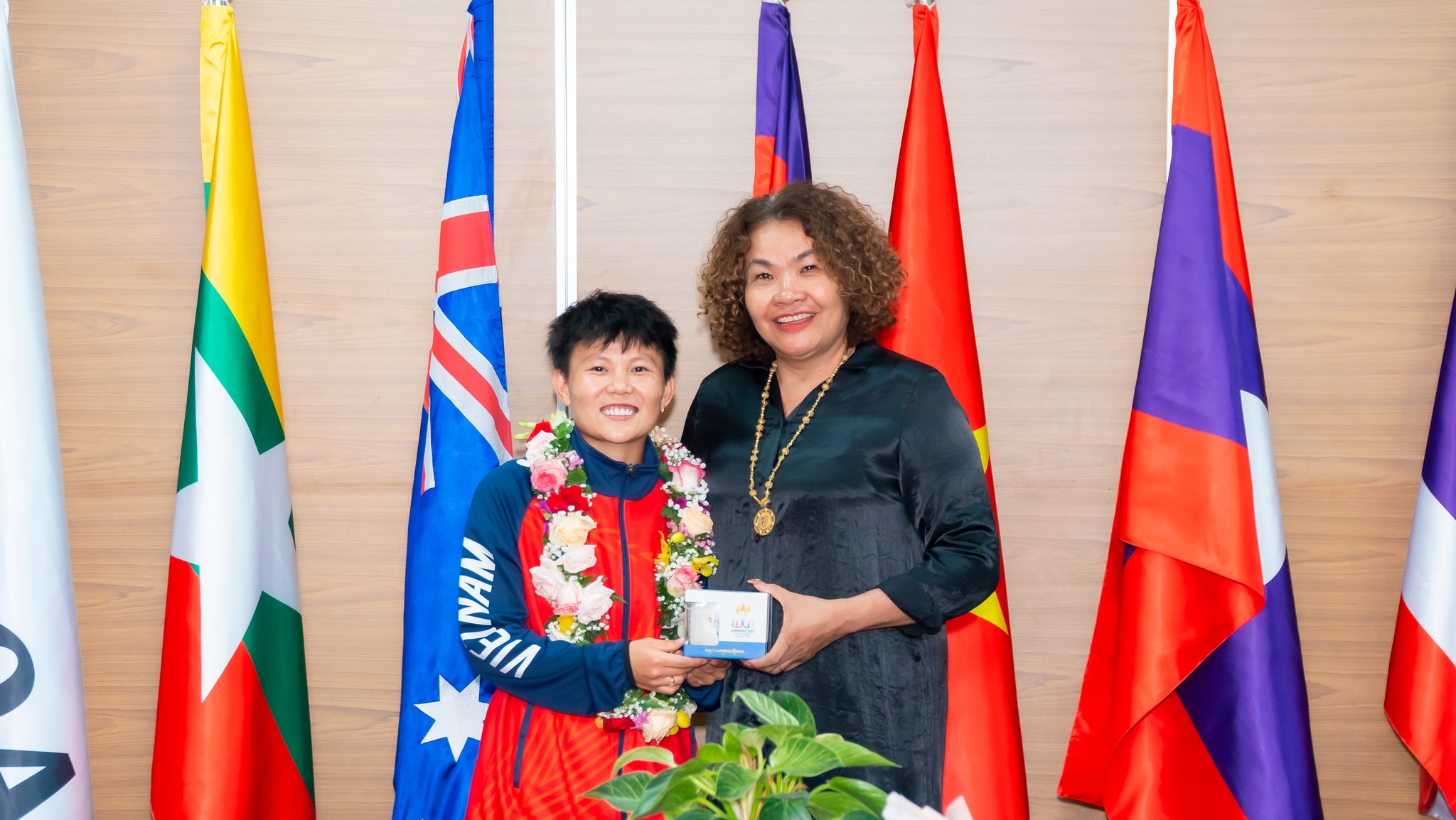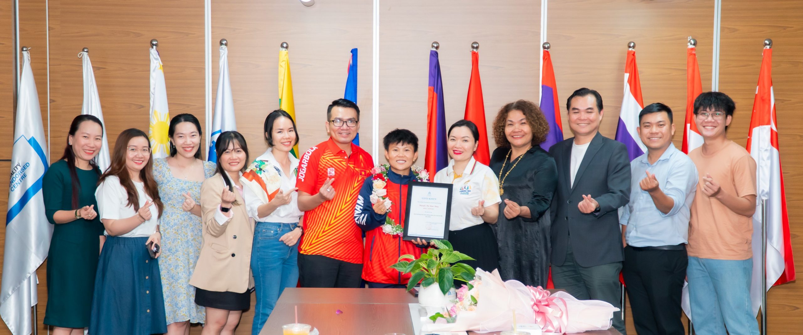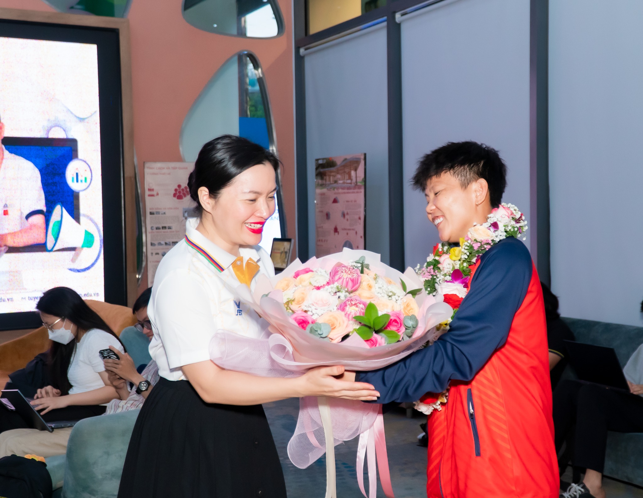 Sau khi giành ngôi vô địch bóng đá nữ tại SEA Games 32 tối 15/5, cầu thủ Nguyễn Thị Bích Thùy đã trở về nước và có chuyến thăm Trường Đại học Hoa Sen, nơi cô đang theo học. PGS.TS Võ Thị Ngọc Thúy – Hiệu trưởng Trường Đại học Hoa Sen cùng đông đảo sinh viên, giảng viên đã cùng có mặt để đón Bích Thùy trở về.