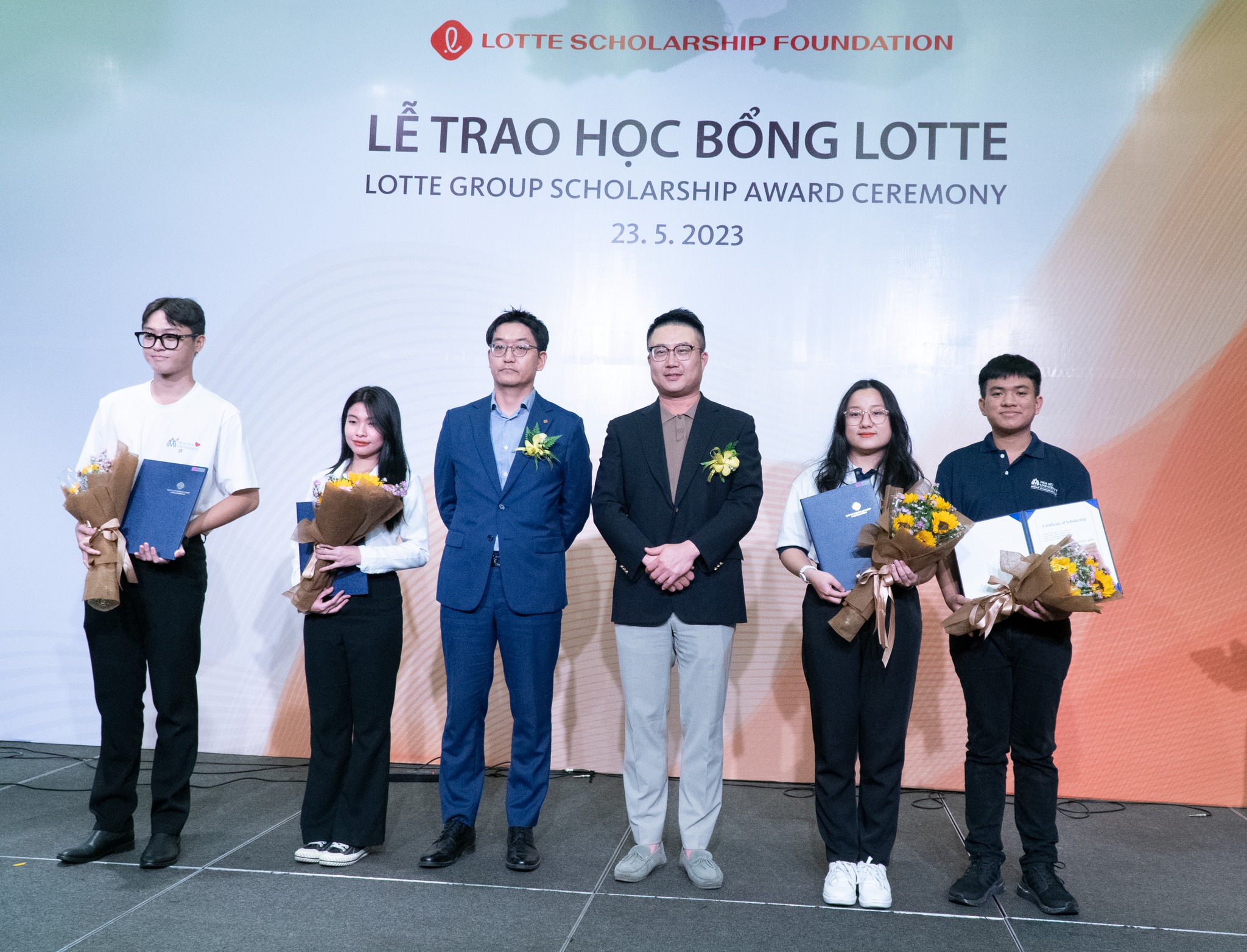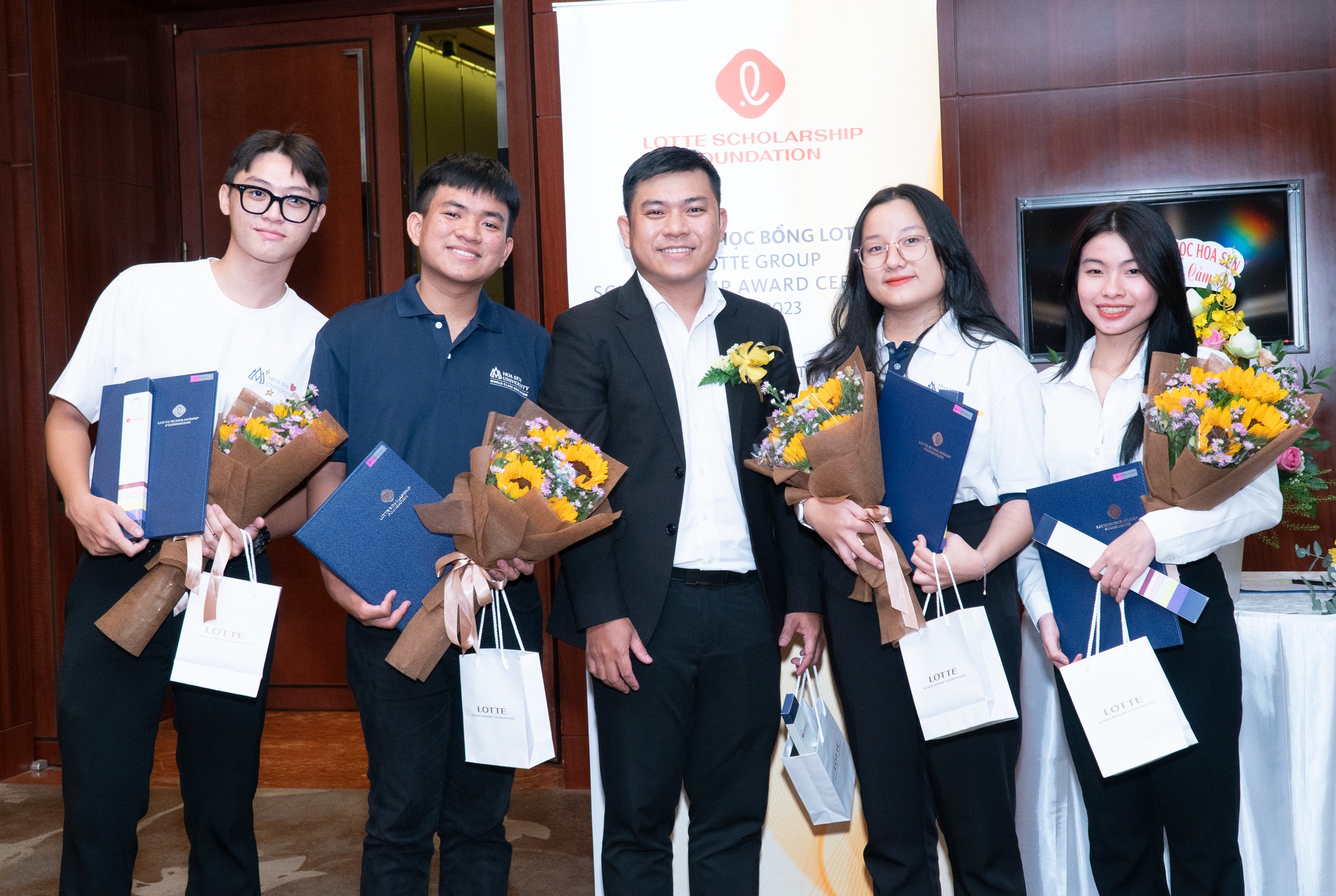Chiều 23/5/2023, 4 bạn sinh viên xuất sắc của Trường Đại học Hoa Sen đã được Khách sạn Lotte Sài Gòn trao tặng 4 suất học bổng.