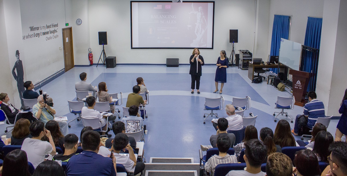 Trong khuôn khổ các hoạt động giao lưu văn hóa American Film Showcase (AFS), ngày 13/5/2019, Tổng Lãnh sự quán Hoa Kỳ tại TP.HCM phối hợp với Khoa Thiết kế và Nghệ thuật, Ngành Quản trị Công nghệ Truyền thông (trường Đại học Hoa Sen) tổ chức buổi chiếu phim tài liệu Balancing the Scales (tạm dịch: Cán cân bình đẳng giới) và giao lưu với tác giả – đạo diễn phim tài liệu đồng thời là luật sư danh tiếng của Mỹ – Sharon Rowen tại trụ sở chính (8 Nguyễn Văn Tráng, Q.1) của trường.