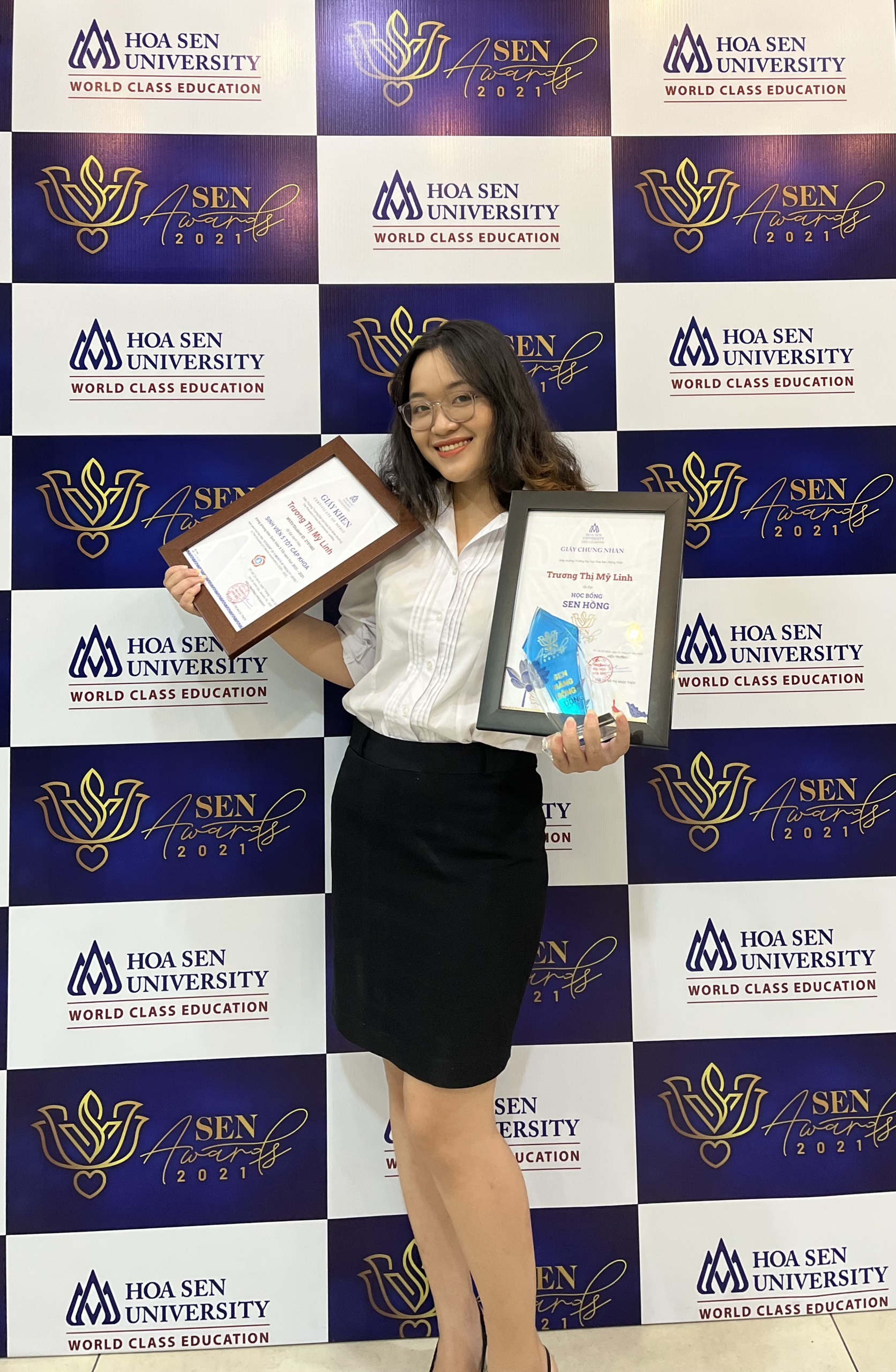Là cá nhân nhận được nhiều giải thưởng nhất, Trương Thị Mỹ Linh là một trong những gửi mặt nổi bật của Sen Awards 202. Em chia sẻ: “Khi hay tin được nhận các danh hiệu của Sen Awards năm 2021 thì em rất là vui và tự hào về bản thân vì em được nhận cùng lúc 5 giải. Các giải thưởng này đã giúp em khẳng định được bản thân mình nhiều hơn. Nhất là đối với gia đình bởi trước đó ba mẹ từng phản đối ngành học của em. Đây là minh chứng để em khẳng định với ba mẹ là em đã chọn đúng. Em tin là khi mình được làm điều mình thích, mình sẽ hết mình với nó và đạt được nhiều thành tích cao”.
