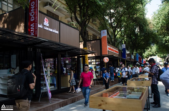 Đường sách TPHCM có chiều dài 144m được thiết kế linh hoạt theo hướng mở bao gồm 5 không gian hoạt động với sự tham gia của gần 20 nhà xuất bản, đơn vị làm sách uy tín trên cả nước. 20 gian hàng và 3 ki-ốt sách không chỉ là nơi để các đơn vị giới thiệu, kinh doanh, trao đổi sách, các ấn phẩm văn hóa mà còn là địa điểm tổ chức các chương trình giao lưu, trao đổi để người làm sách có điều kiện tiếp cận nhằm hiểu rõ hơn nhu cầu của độc giả. Hai khu cà phê sách là không gian được chọn để thường xuyên tổ chức các hoạt động văn hóa đọc và giao lưu văn hóa nghệ thuật.