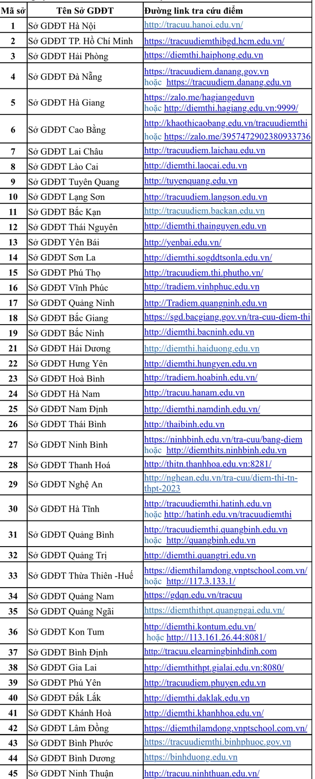 Cách 1: Thí sinh tra cứu điểm thi tốt nghiệp THPT năm 2023 qua website của Sở GD&ĐT các tỉnh/thành phố.