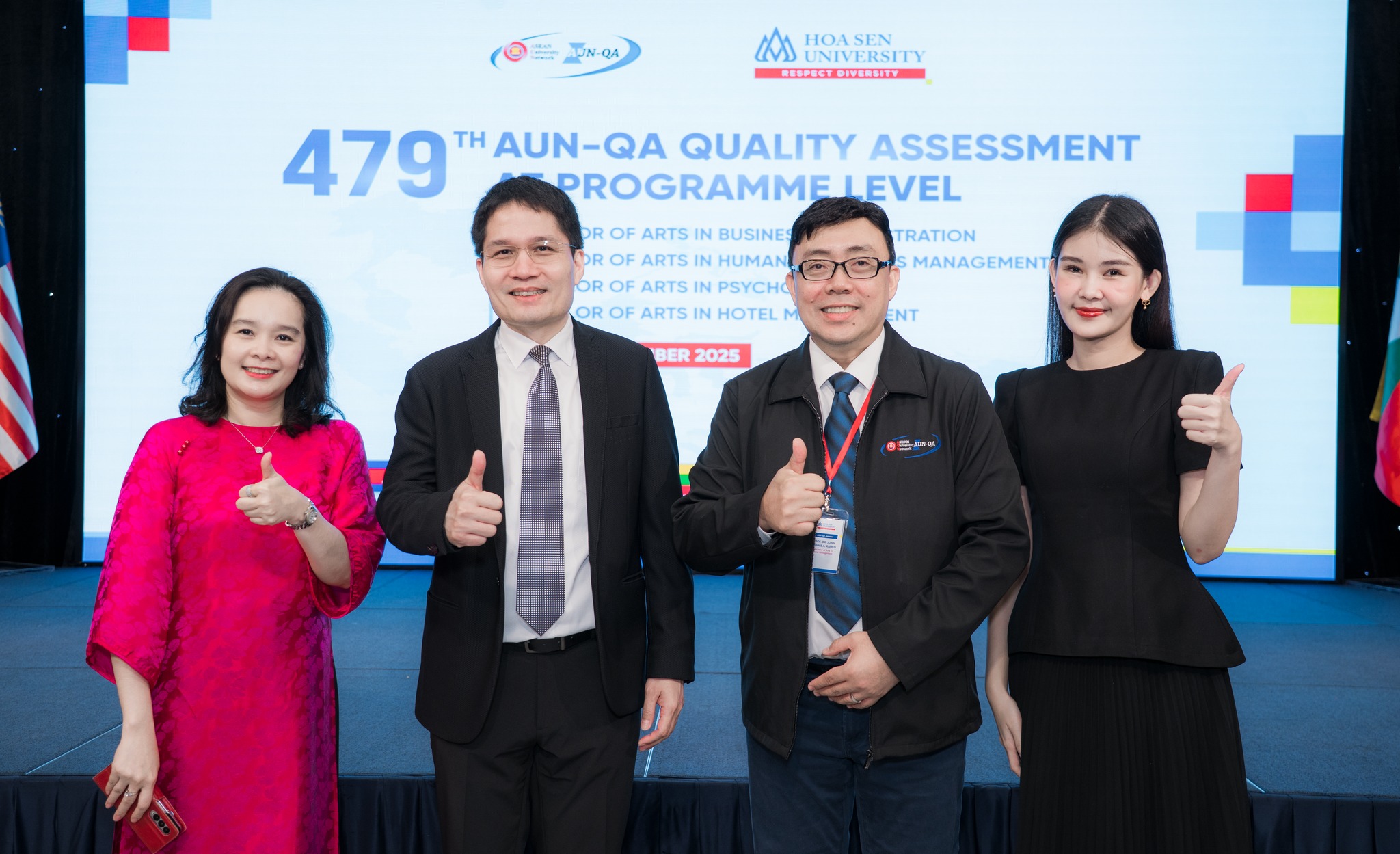 Trong ba ngày, từ 25 đến 27/11/2025, Trường Đại học Hoa Sen (HSU) vinh dự đón Đoàn đánh giá AUN-QA đến thực hiện đánh giá 4 chương trình đào tạo: Quản trị Kinh doanh, Quản trị Nhân lực, Quản trị Khách sạn và Tâm lý học. Đây là cột mốc quan trọng, tiếp nối hành trình đảm bảo chất lượng bền vững của Nhà trường và là bước tiến mới trong chiến lược nâng chuẩn quốc tế theo hướng ứng dụng.
