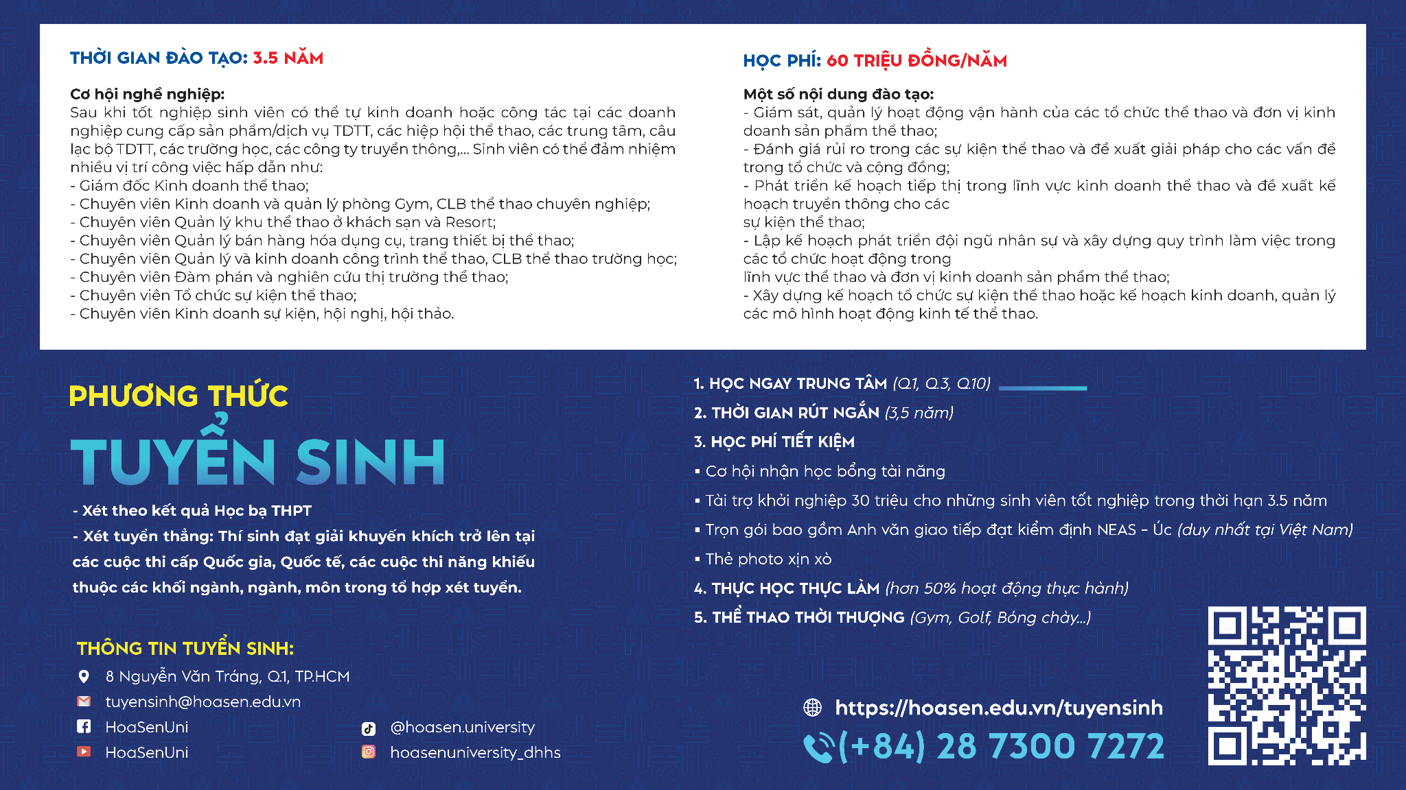 Tham khảo thêm thông tin về Ngành Kinh tế thể thao của Đại học Hoa Sen tại đây