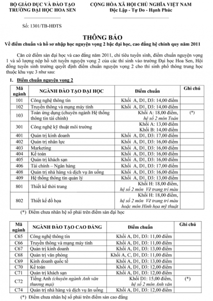 Trang chủ - Thông tin tuyển sinh - Điểm chuẩn và hồ sơ nhập học NV2 bậc ĐH, CĐ hệ chính quy năm 2011
