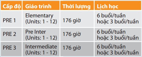 Nếu trình độ tiếng Anh chưa đạt, thí sinh được học lớp dự bị tiếng Anh (Pre) với các cấp độ phù hợp. Thí sinh cần thực hiện bài kiểm tra xếp lớp tiếng Anh.