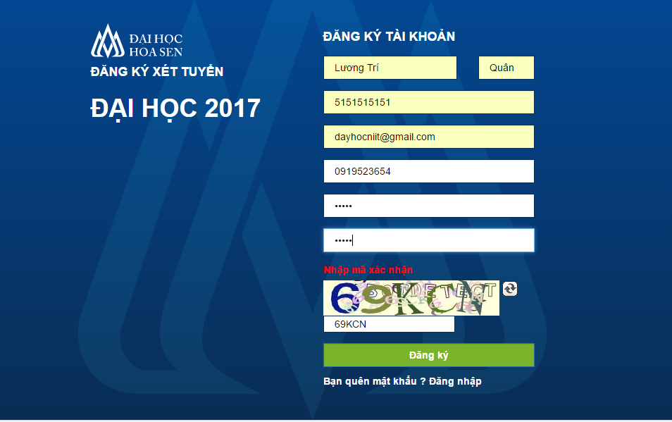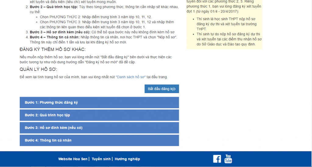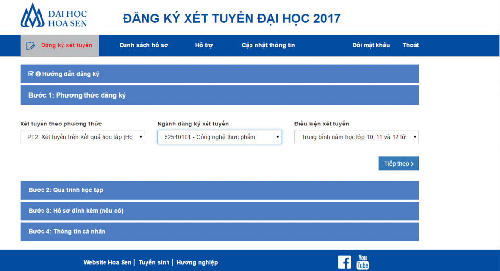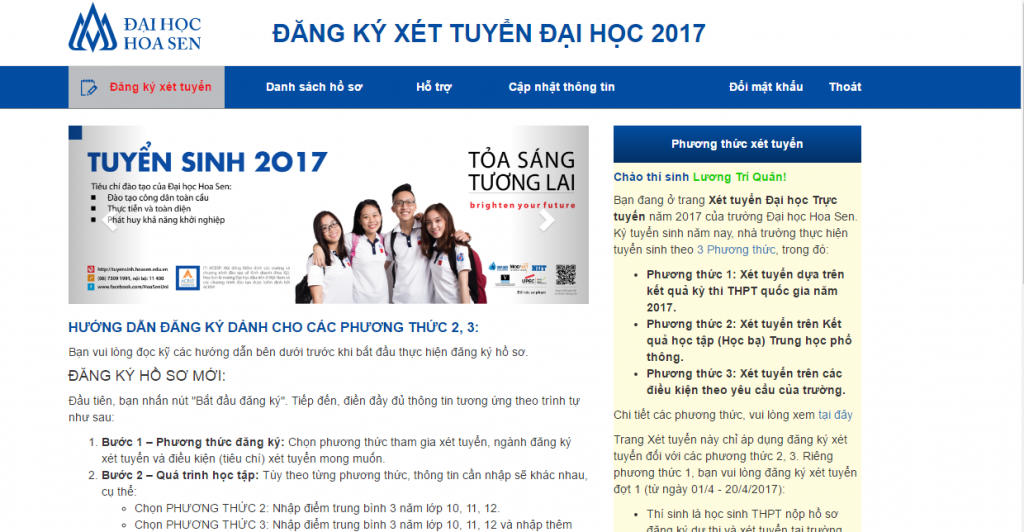 Hướng dẫn đăng ký xét tuyển trực tuyến theo phương thức riêng vào Trường Đại học Hoa Sen năm 2017