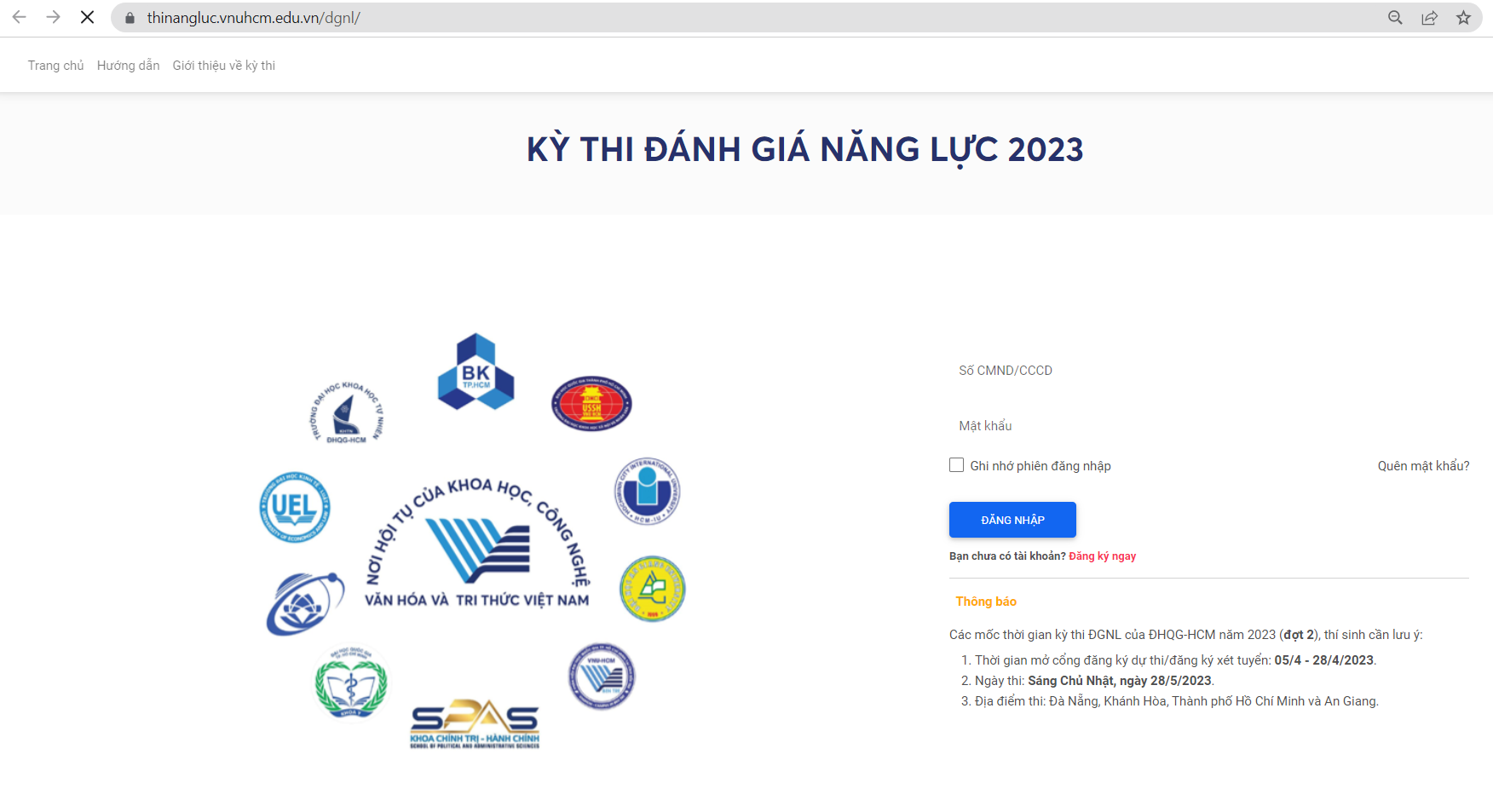 Bước 1: Thí sinh truy cập tại website: http://thinangluc.vnuhcm.edu.vn