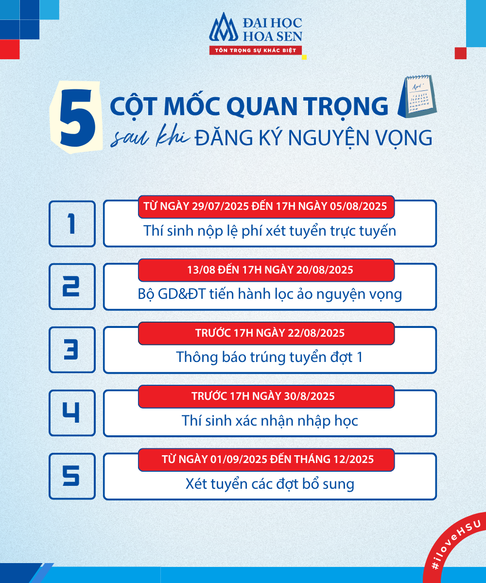 Hãy cùng điểm qua những mốc thời gian quan trọng thí sinh cần làm ngay sau khi chốt nguyện vọng đăng ký xét tuyển 2025.
