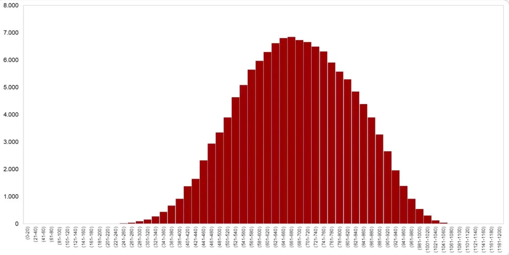 Phổ điểm có dạng gần phân bố chuẩn, tập trung chủ yếu ở mức trung bình – khá, nhưng vẫn trải rộng trên nhiều mức điểm, phản ánh khả năng đánh giá đa dạng năng lực thí sinh. Độ lệch chuẩn đạt 141,2 (cao hơn các năm trước) cho thấy khả năng phân loại ngày càng rõ nét. Khoảng 30% thí sinh đạt dưới 600 điểm, 55% dưới 700 điểm và khoảng 6% đạt từ 900 điểm trở lên, thể hiện sự phân tầng rõ rệt giữa các nhóm năng lực.